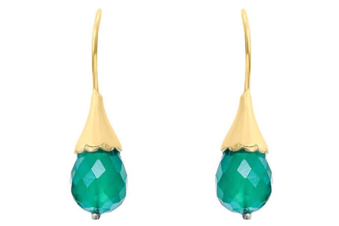 Flower Bud Green Onyx Drop Earrings