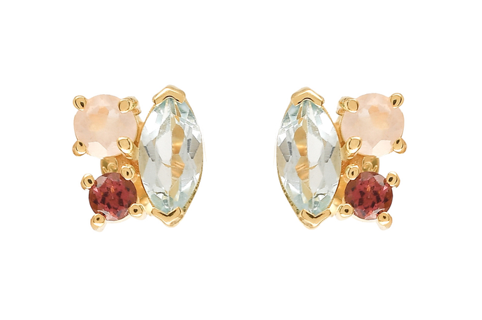 Juliet Blue Topaz, Tourmaline & Rose Quartz Stud Earrings